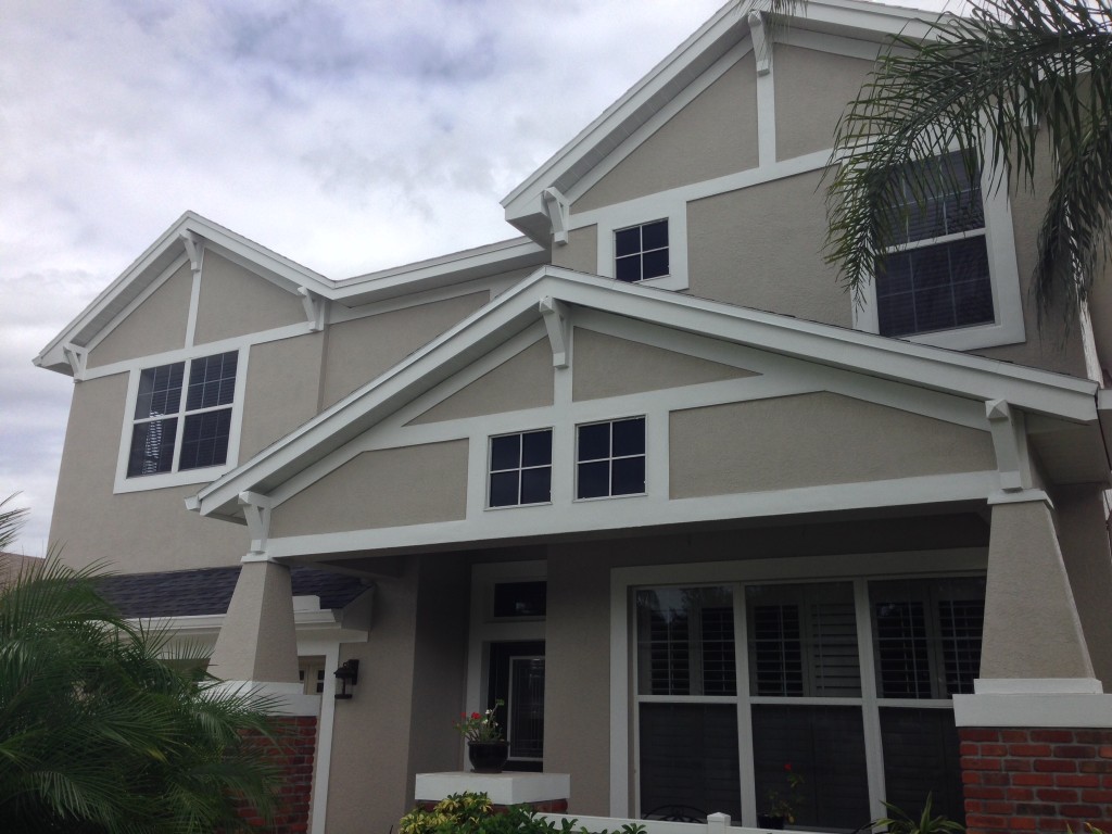Pressure Wash Prep. Caulk all imperfections on the home exterior. Elastomeric caulking of small defects in the stucco on the front of the home above the entranceway. This caulking will be applied as needed to the windows, doors and fascia and trim. 1 coat masonry surface sealant. 2 coats of Sherwin Williams Super paint. All materials and labor included in the pricing for the painting
