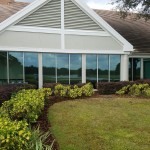 Project consisted of Removal of old windows and rotten sills. Replaced with storefront 1" insulated, standard green tinted, and tempered safety glazing. Included 3 replacement arched windows. Replaced doors with non impact rated storefront doors, caulking and installation of new trim throughout.